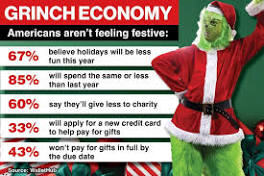 Grinch economy: Americans feeling stingy this holiday season as personal debt, economic ... Nearly two in three Americans say the economy will make the holidays less fun this year, according to a new report.